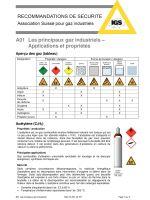 Les principaux gaz industriels - Manipulation des bouteilles de gaz - Mesures d’urgence pour bouteilles de gaz - Enrichissement en oxygène - Manque d’oxygène - Manipulation de l’acétylène - Manipulation des liquides cryogéniques - Manipulation du dioxyde de carbone - Dioxyde de carbone solide - Glace carbonique