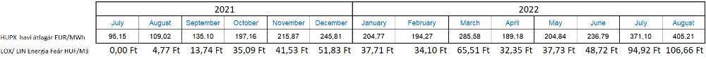 Figyelembe véve az augusztusi átlagos energiaárat (405,21 €/MWh), az alábbi ideiglenes felárat/pótdíjat állapítjuk meg szeptember hónapra:
