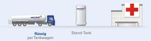 Zustand. Dies führt zu einer deutlich verbesserten Versorgungssicherheit. 1 liter flüssiger medizinischer Sauerstoff entsprechen ca. 850 liter gasförmigen medizinischen Sauerstoff.