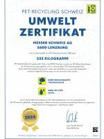 Messer Schweiz erhielt vom Verein PRS PET-Recycling Schweiz ein Umwelt-Zertifikat.